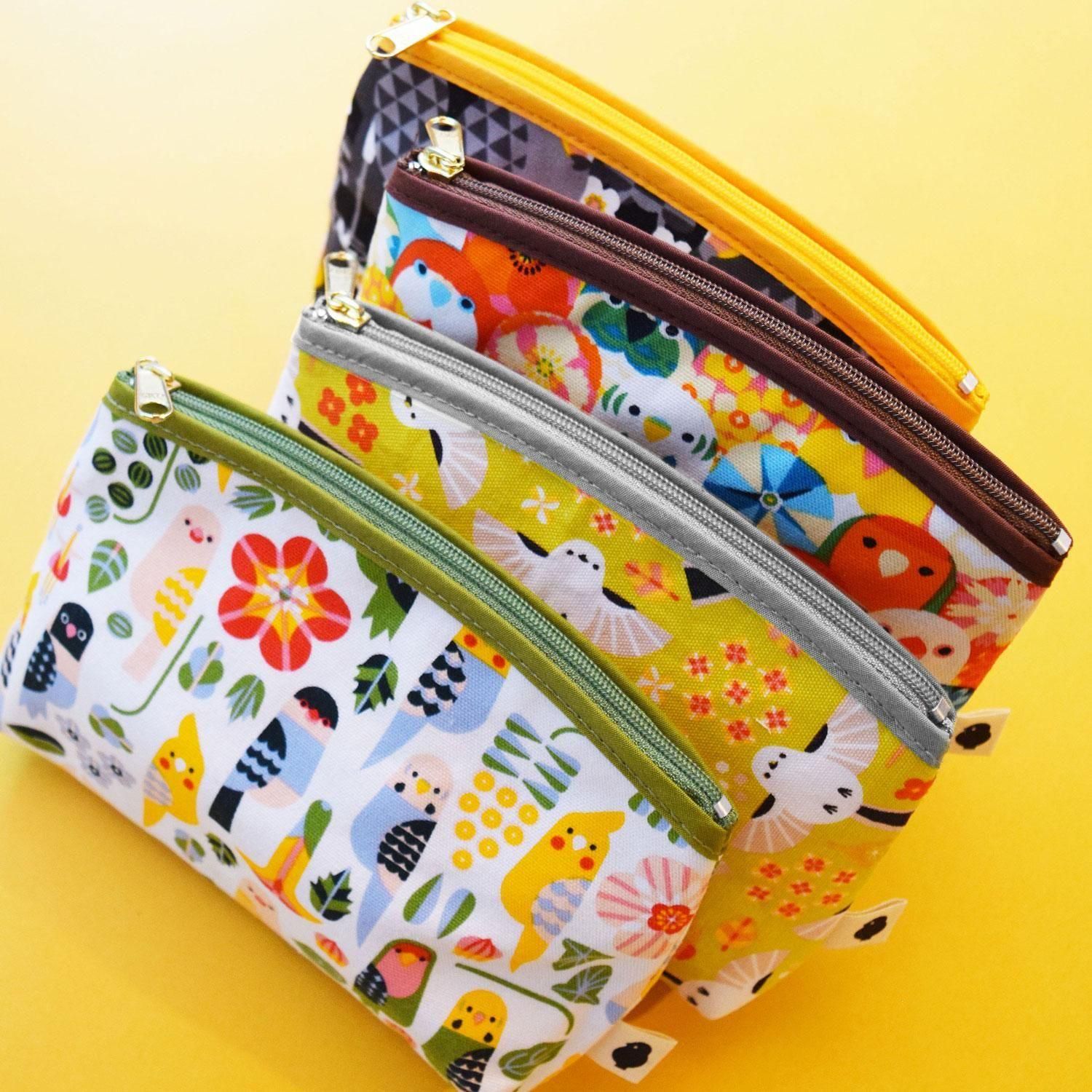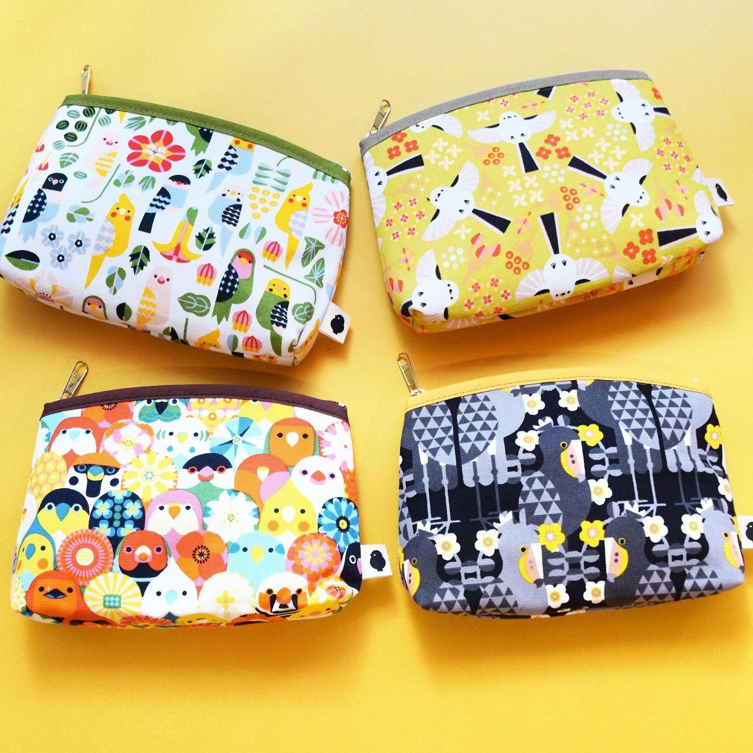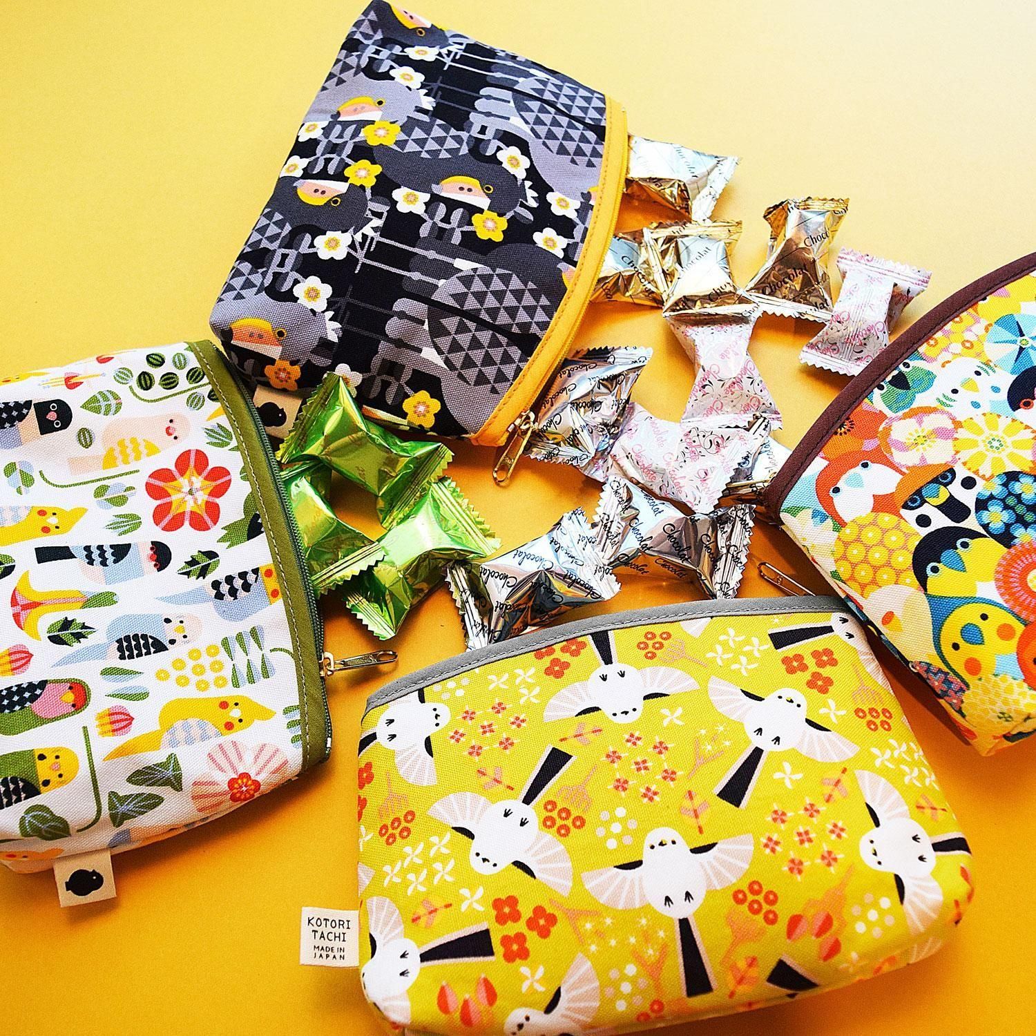 2026年度新デザインの<舞うシマエナガ>を含めて4種発売!金色の引手が可愛い国内産ポーチです。